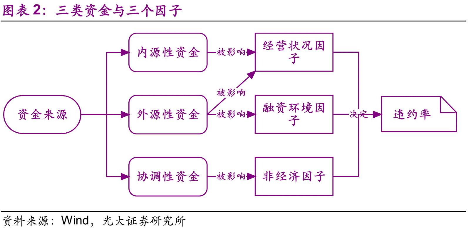 债券发行人偿付本息的资金来源可分为三类:内源性资金、外源性资金、协调性资金。内源性资金是指发行人经营活动结果产生的资金,主要取决于发行人的经营状况。外源性资金是指发行人依靠自身能力向其他经济主体筹集的资金,大多数情况下为来源于贷款、信托的债权资金,但也有可能为通过增发股票等方式所获得的股权资金。(请注意,我们这里强调“依靠自身能力”,即资金提供方的出资完全基其对于发行人未来发展的判断,而非其余主体对其的影响。)