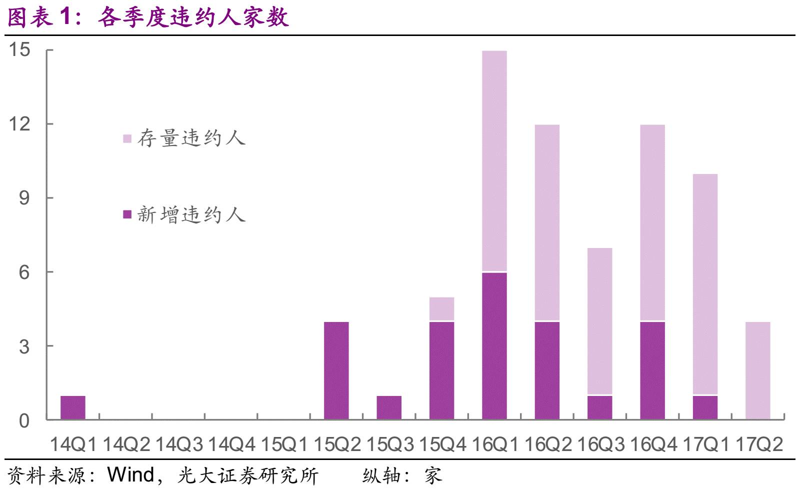 不幸的是,2017年同时具有这两个特征:年内经济增速递减,而且货币政策和金融监管政策明显比2016年更为紧缩。那么2017年债券市场的违约将会怎样?为了回答这个问题,我们先来回顾下2017年初至今(5月15日)的违约案例。
