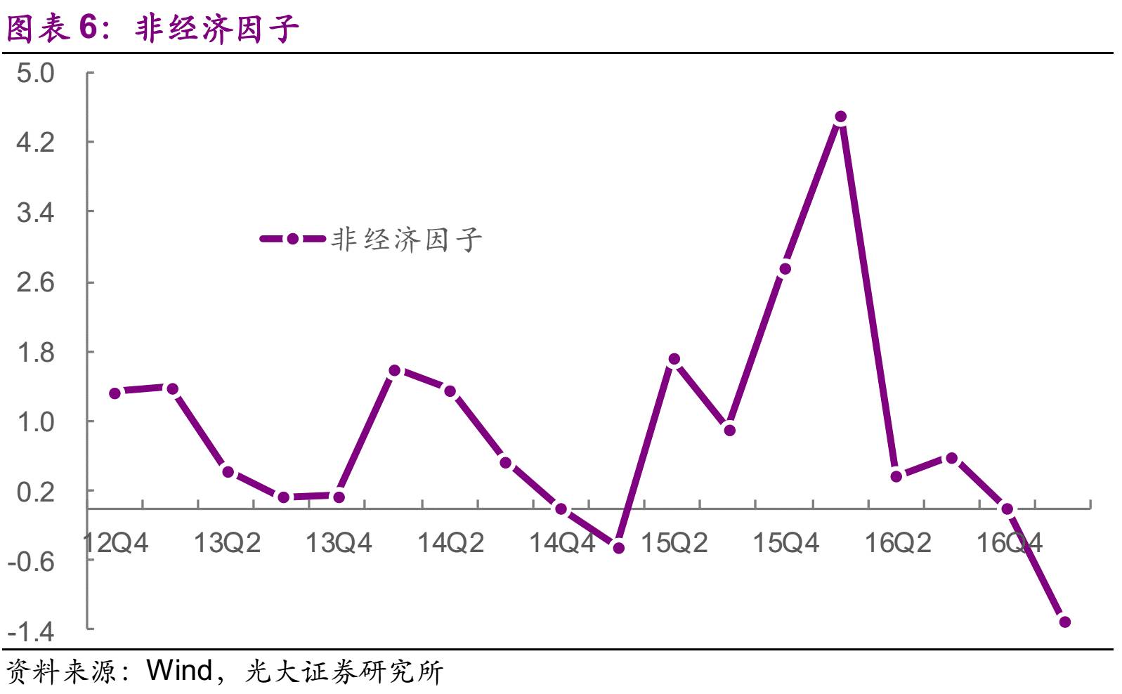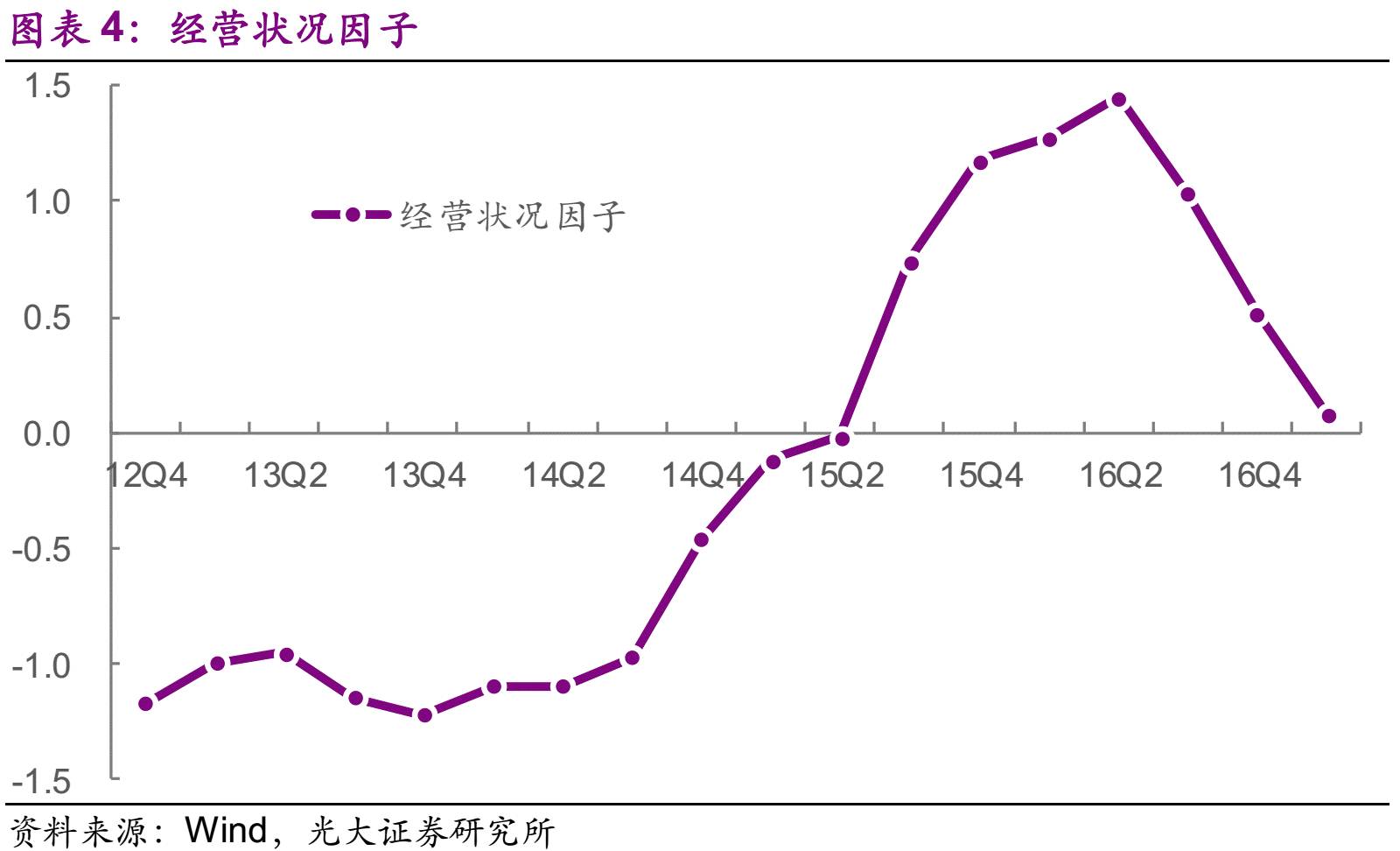 事实上,当前的融资环境明显比16Q1更为糟糕,信贷增速下降、表外融资受阻、债券发行量显著降低,融资因子已经上升至1.58。显然,支撑债券信用资质的不可能是融资环境因子,而是经营状况因子和非经济因子。