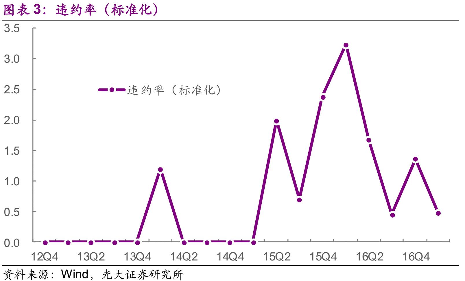 根据违约率三因子模型,我们分三个情景对17Q2-17Q4的违约率进行了预测。结果显示,2017债券违约风险可控,违约率很难高于2016年。(再次强调一下,本文中违约率指“新增主体违约率”,计算方法请见前文。)